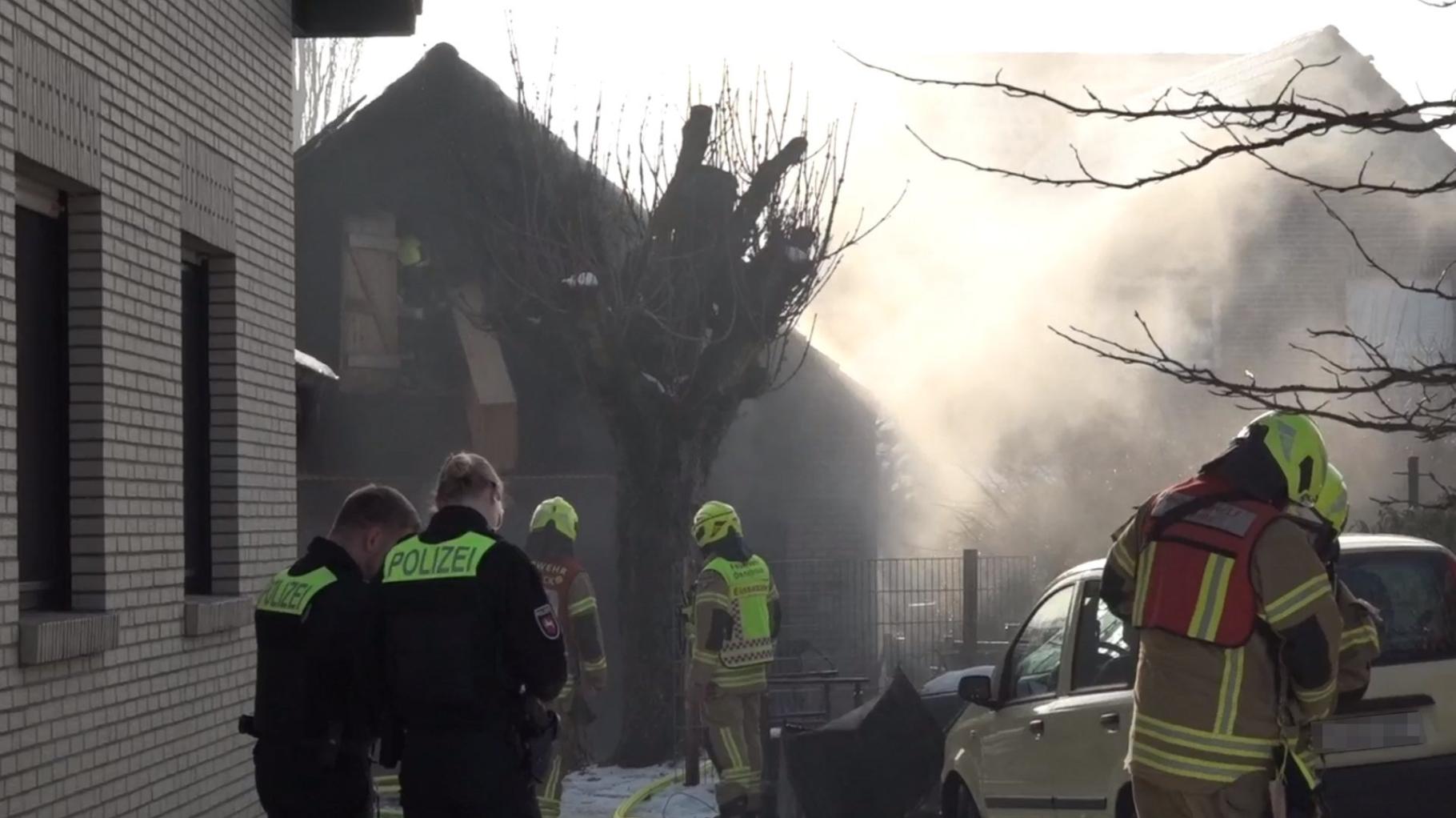 Ein Großaufgebot der Feuerwehr ist am Sonntagmorgen nach Osnabrück-Pye ausgerückt. Am Moorweg brannte eine Garage. Die Einsatzkräfte kämpften gegen die Flammen, um ein Übergreifen auf das angrenzende Wohnhaus zu verhindern.