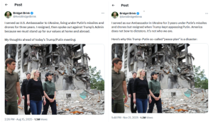 Postings von Bridget Brink vom 15.8.2025 & 21.11.2025 im Kampf gegen Russland | Quelle: Screenshots X @AmbBridgetBrink