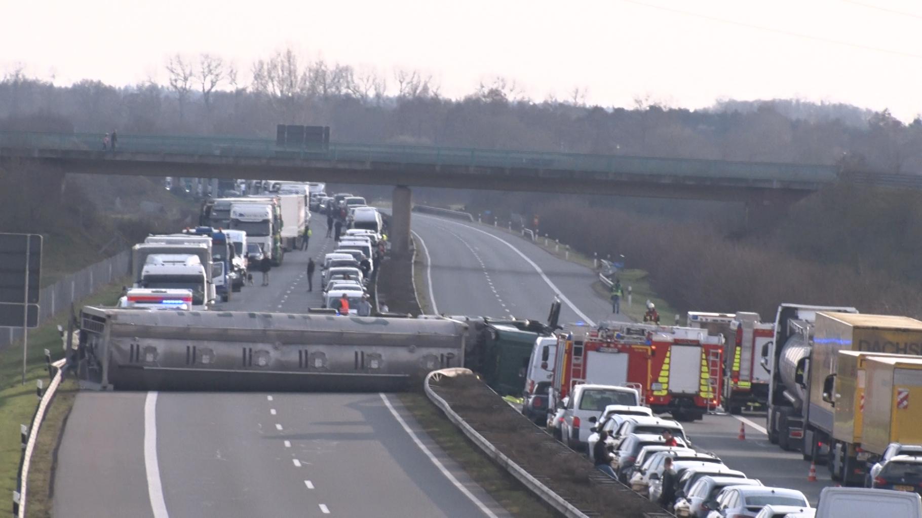 Ein Tank-Sattelzug ist am Donnerstag auf der A31 zwischen Lingen und Wietmarschen von der Fahrbahn abgekommen und umgekippt. Die Autobahn war stundenlang gesperrt. Seit dem frΓΌhen Freitagmorgen rollt der Verkehr wieder.