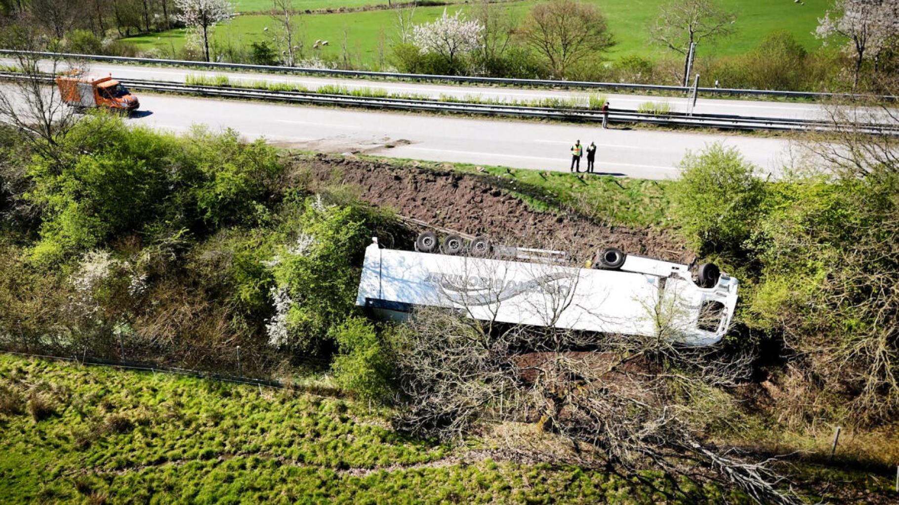 Video: 40-Tonner stürzt auf A23 Böschung hinab – Vollsperrung bis zum Abend
